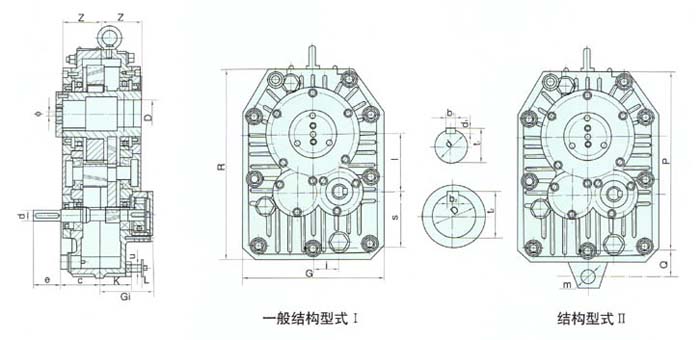 1、ZJ型軸裝式減速器用于輸送機(jī)和斗式提升機(jī),以及其它懸掛安裝的通用機(jī)械的傳動;